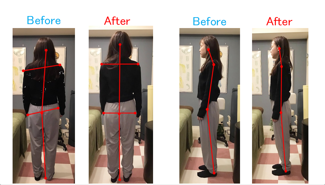 施術前後の姿勢チェック例