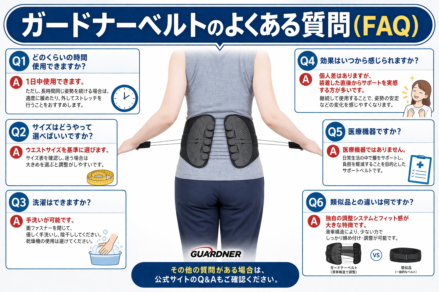 軽い腰サポートであれば類似品でも問題ない場合がありますが、しっかりした固定力を求める場合はガードナーベルトの方が向いているケースもあります。