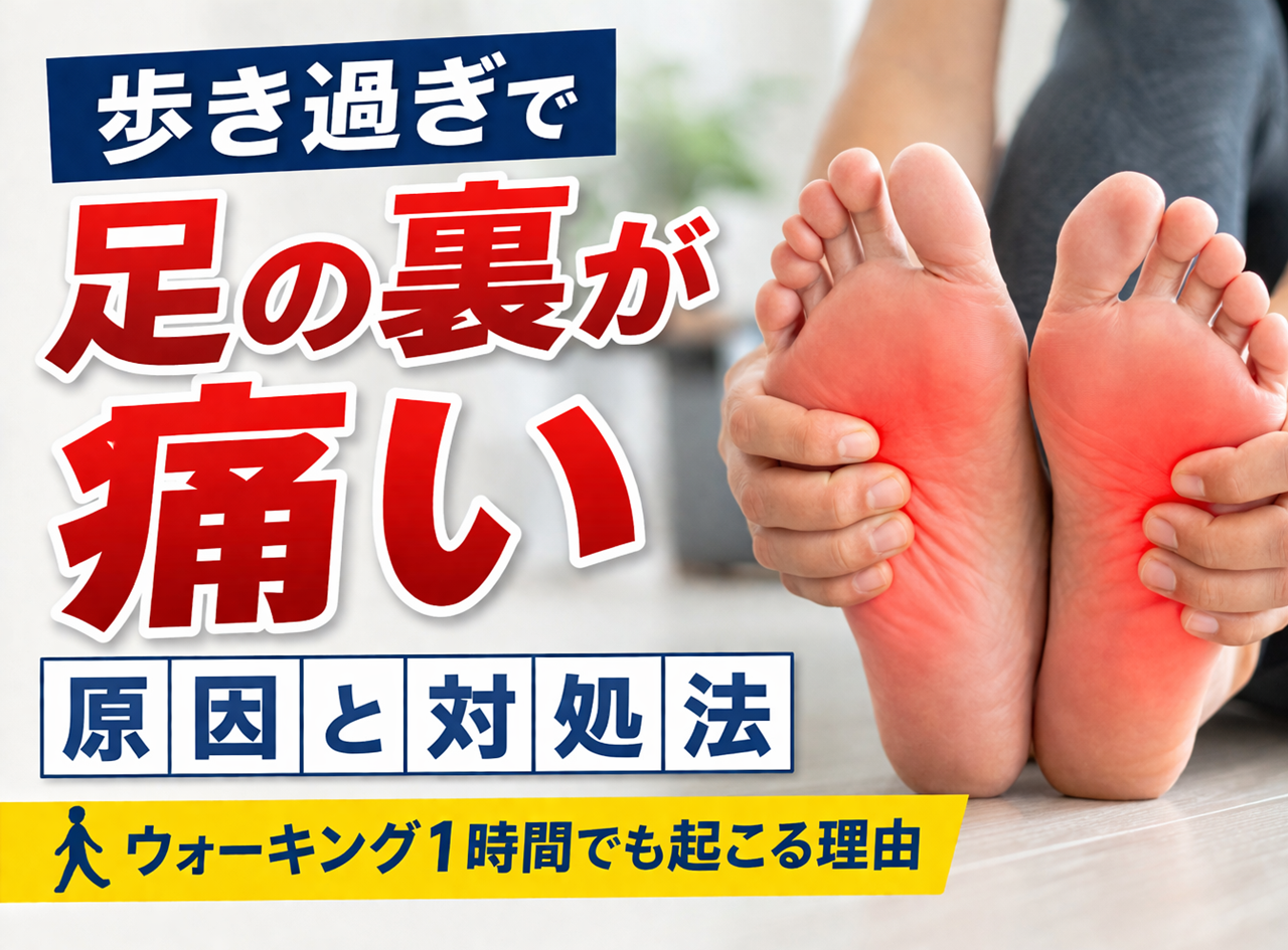 歩きすぎて足の裏が痛くなることは珍しくありません。ウォーキングや旅行、テーマパークなどで長時間歩いたあとに足が痛くなるのは、筋肉の疲労や衝撃の積み重ねによるものが多いです。